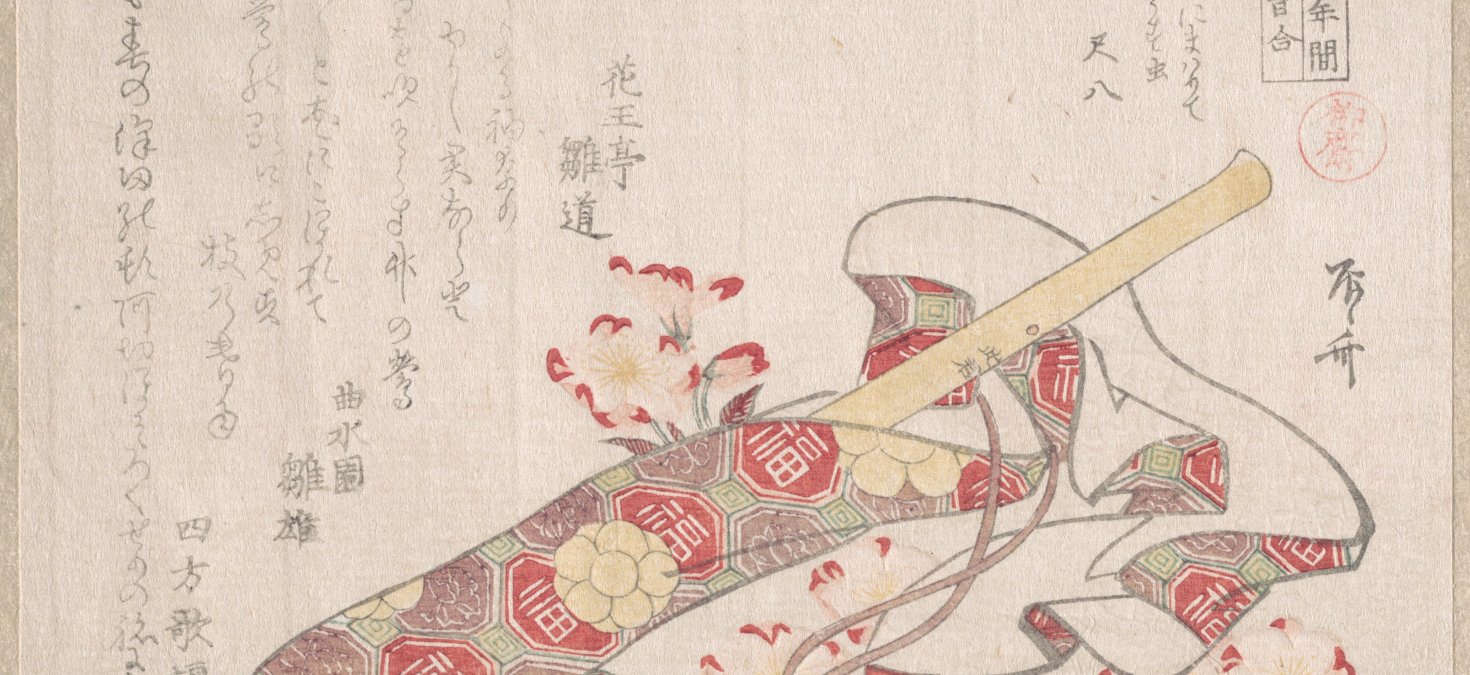 Shakuhachi (A Kind of Bamboo Flute) and Its Cover by Sunayama Gosei via The Met Museum