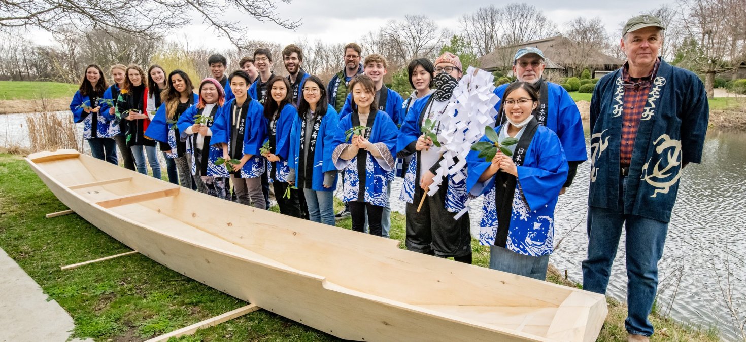 Japan House was excited to offer ARTJ 391: Independent Study in Japanese Aesthetics with a special opportunity to delve into a Japanese Traditional Boatbuilding Apprenticeship for Spring 2022 featuring artist-in-residence Douglas Brooks who specializes in Japanese traditional boatbuilding. Independent study allows for students to explore an area of interest within Japanese aesthetics under the guidance of an instructor to develop a research or creative project. This once in a lifetime opportunity focused on the direction of a creative project through a Japanese traditional boatbuilding apprenticeship. This is a hands-on, experiential course, immersed students in a traditional Japanese apprenticeship setting on the University of Illinois campus at Japan House and the Siebel Center for Design. It was developed in a hybrid manner in which students will prepare through online course materials prior to Douglas Brooks’ arrival on campus as an artist-in-residence for the hands-on woodworking component of the course. This artist residency is funded courtesy of the Arts Midwest GIG (Grow, Invest, Gather) Fund.