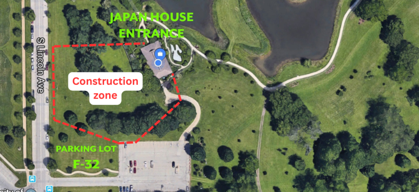 We are pleased to share the foundation! Over the summer, various crews came to put in the utilities. As the semester started, holes are being filled and flattened. Additional fencing was installed to block off the construction area. The tea garden area remains closed, and Japan House is operating with limited programming. The ponds and the greater area of the Arboretum can still be accessed from the north side where Lot F-31 is. Please follow posted signs accordingly and avoid the fenced areas where construction will take place.