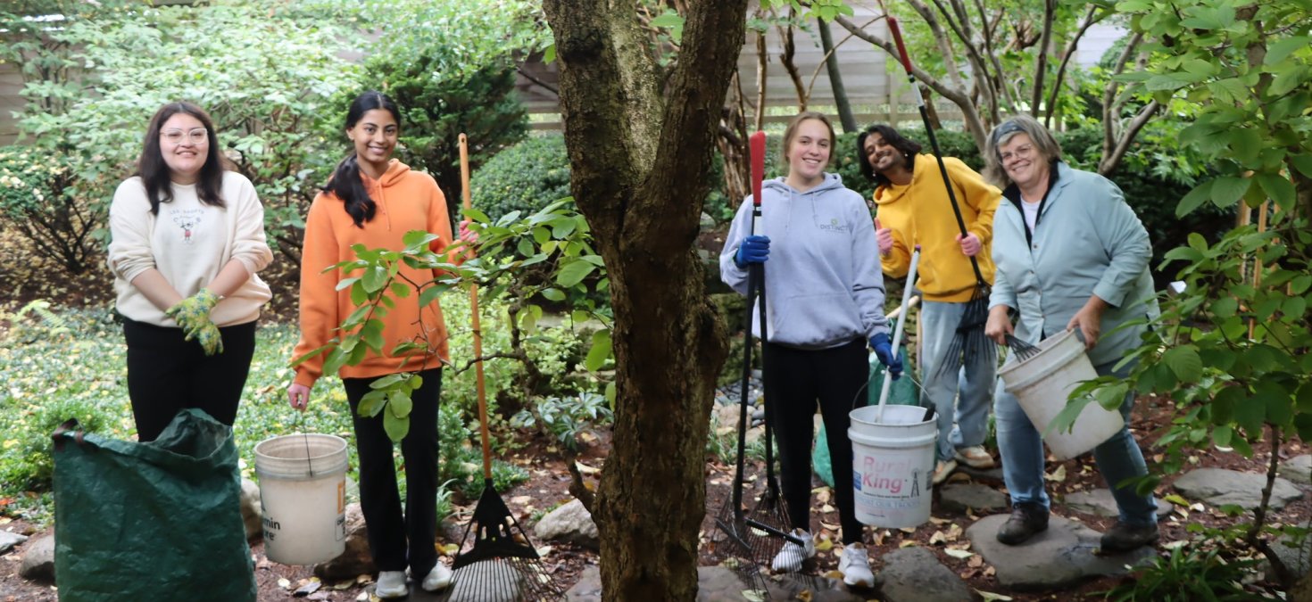 Our gardeners typically work weekly on Tuesday and Friday mornings and our gardening dates depend on the weather (we do not have any tasks during inclement weather). If you have little to no gardening experience, we suggest volunteering on Friday mornings to do simple tasks like raking and picking up sticks. We provide the tools and gardening gloves and all we ask is that volunteers arrive on time and dress appropriately to work outside (if you bring a backpack, you may store it safely inside the building).