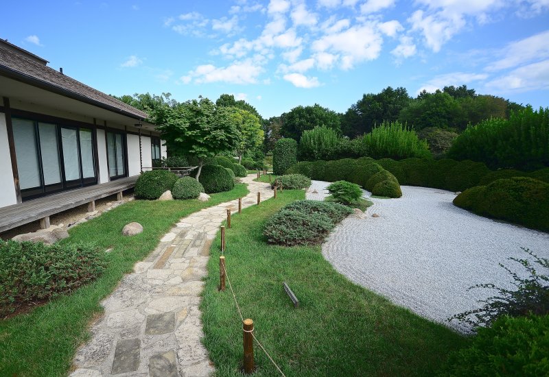 Note: The tea garden is closed due to construction of the Ogura-Sato Annex. Traditional Japanese gardens surround Japan House. These gardens are very different than Western gardens, with a focus on the natural landscape, utilizing plants, rustic stone, and water. Instead of bright color and symmetry, these gardens focus on green foliage and natural shapes of plants. The design of the gardens creates an extraordinarily peaceful and tranquil environment. Japan House is proud to be a member of the North American Japanese Garden Association.
